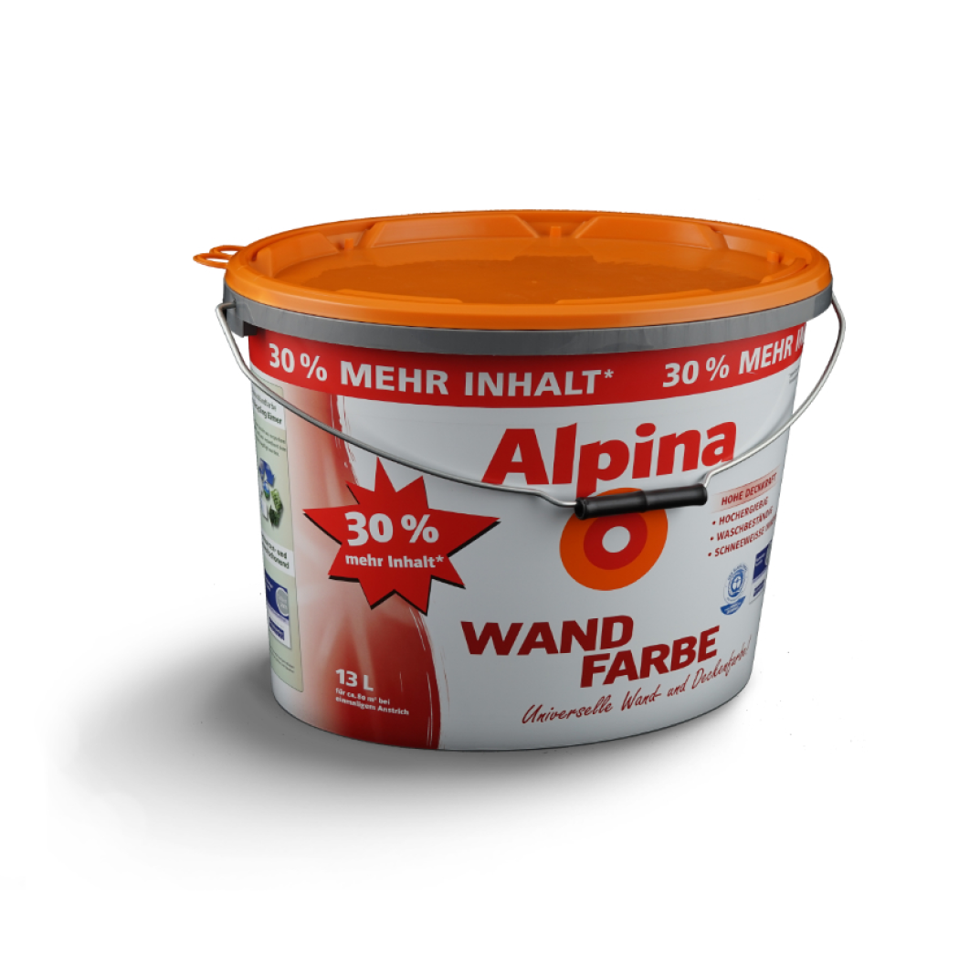 Als Vorreiter bei der Verwendung von Recyclingware setzt DAW mit ihrer Marke „Alpina“ seit Jahren bei Großgebinden auf Recyclingverpackungen von groku – hier ein 15 L Farbeimer.